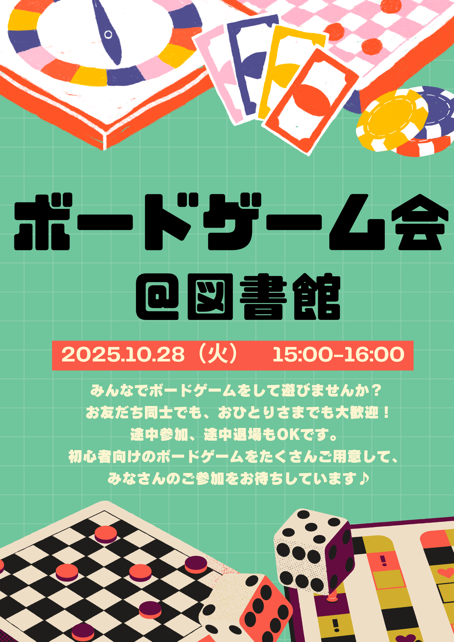 図書館で「ボードゲーム大会」を開催します!